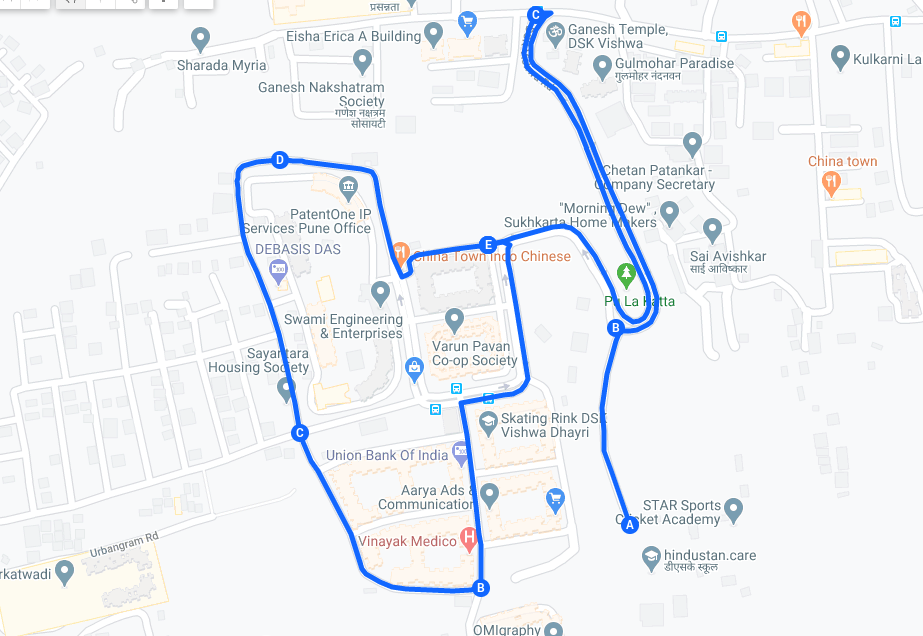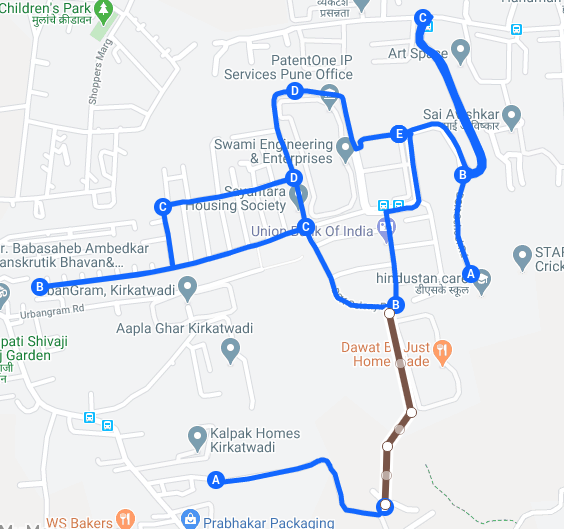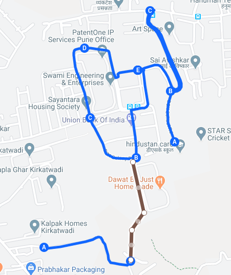 Route map for LSOM March 2020 3K by Yogesh Powar on plotaroute.com